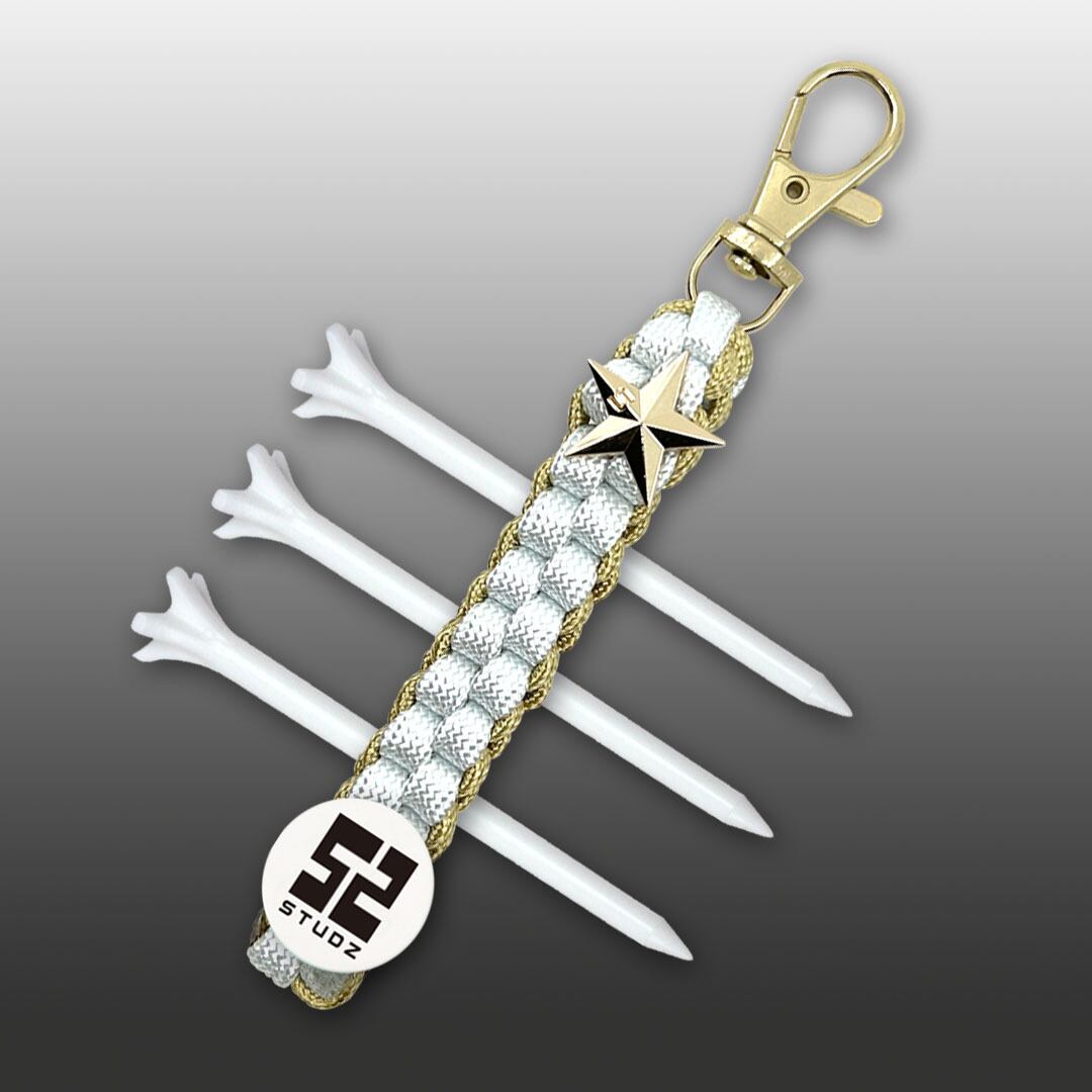 2色の紐で編みこまれ、スタースタッズがついたファッションとしても目を引くティーホルダー。